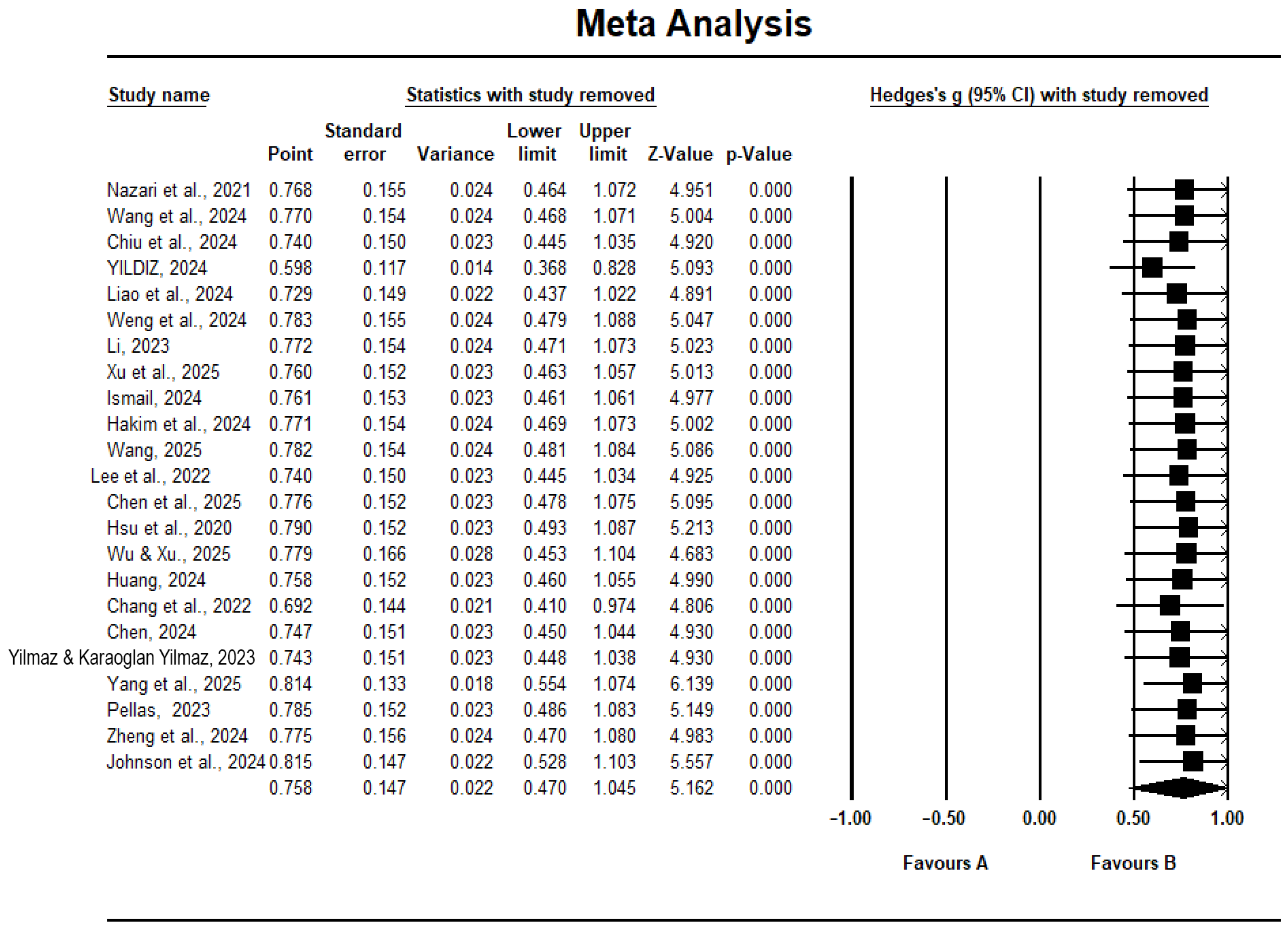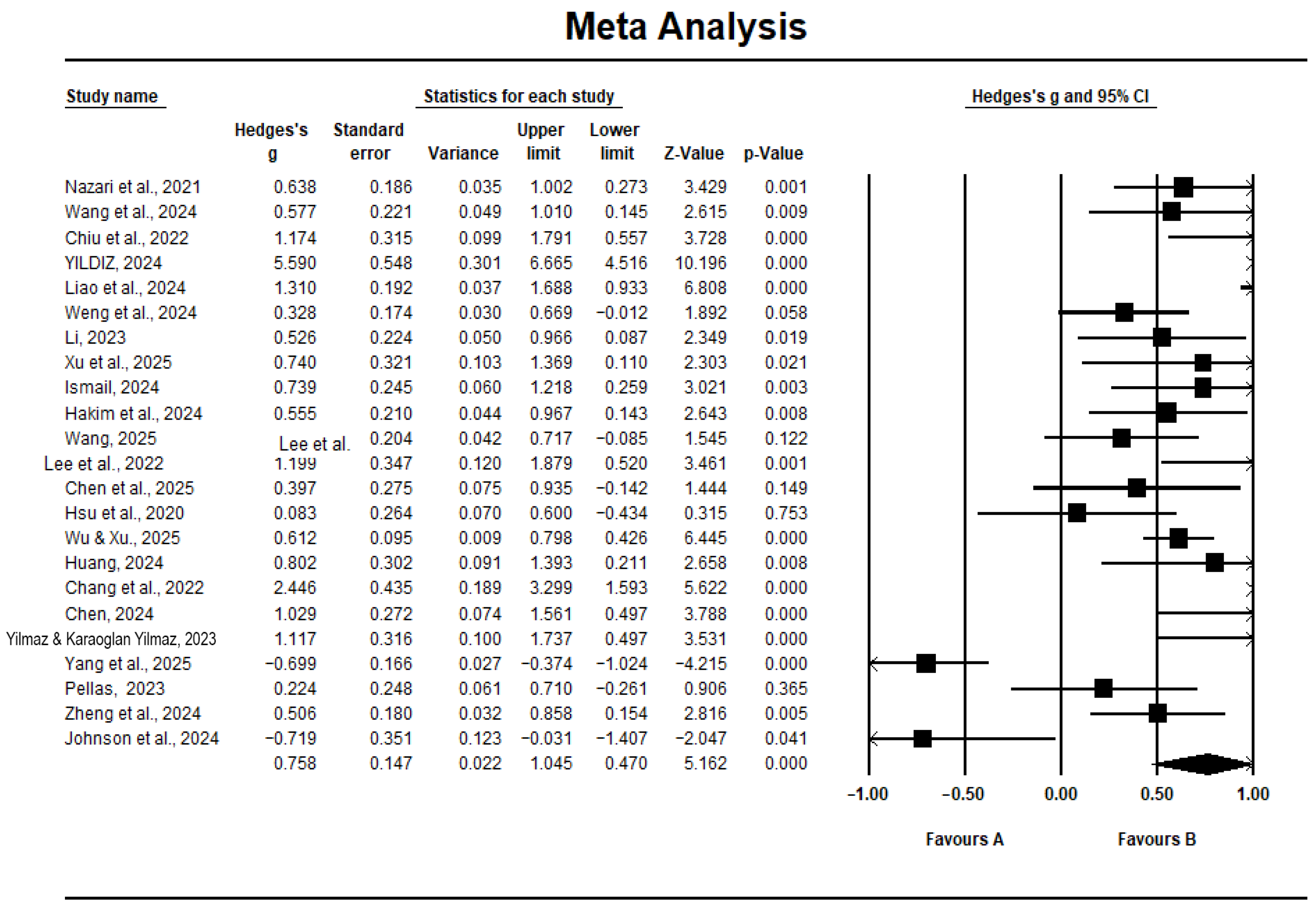 3.1. Overall Effect Size of AI on Self-Efficacy