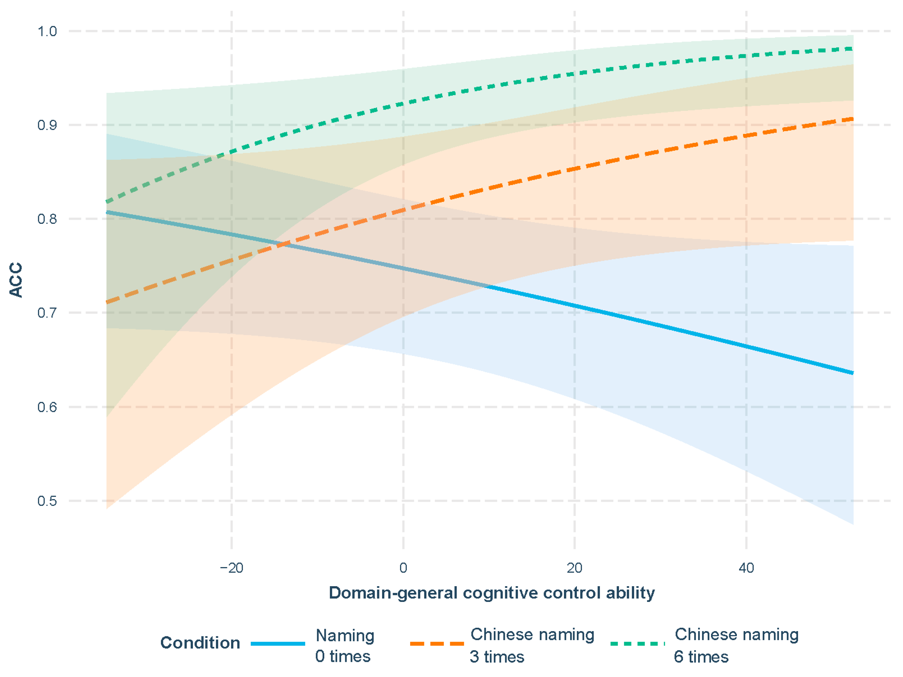 In addition, Experiment 1B also identified a novel moderating role of the participants’ domain-general cognitive control ability, in which the participants with higher domain-general cognitive control ability presented a larger facilitation effect on ACC. One possible explanation involved domain-general proactive control. Proactive control refers to “a sustained and anticipatory mode of control that is goal-directed, allowing individuals to actively and optimally configure processing resources prior to the onset of task demands” (