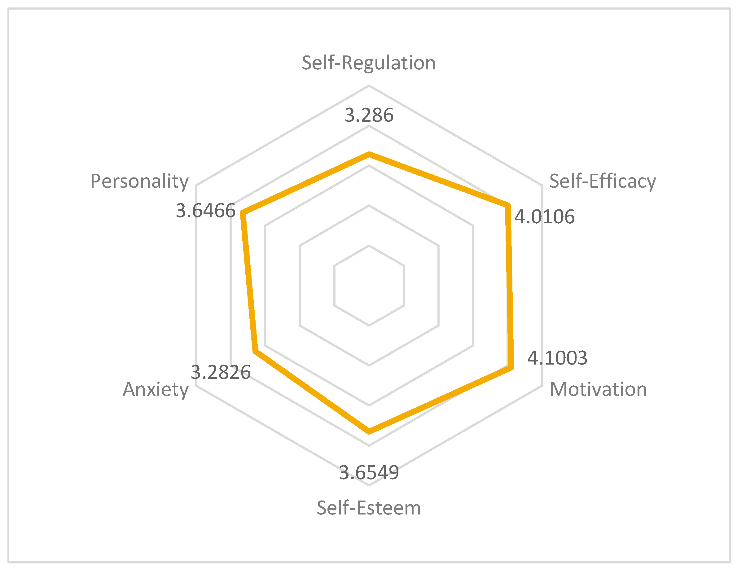 | Self-Efficacy | Personality | Anxiety | Self-Regulation | Motivation | Self-Esteem | ||