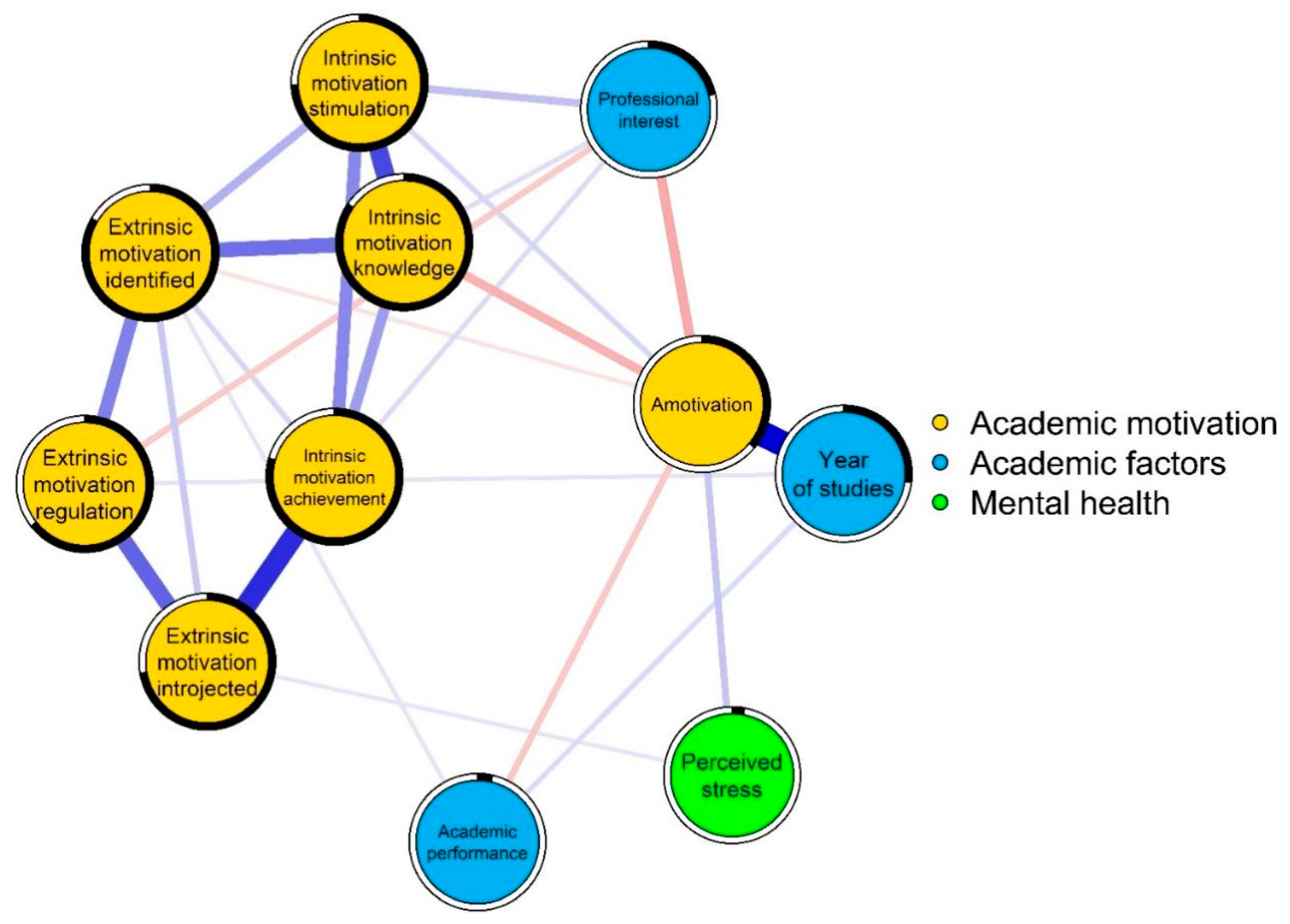 Figure 4. Network structure of academic motivation, academic factors, and mental health in medical students.