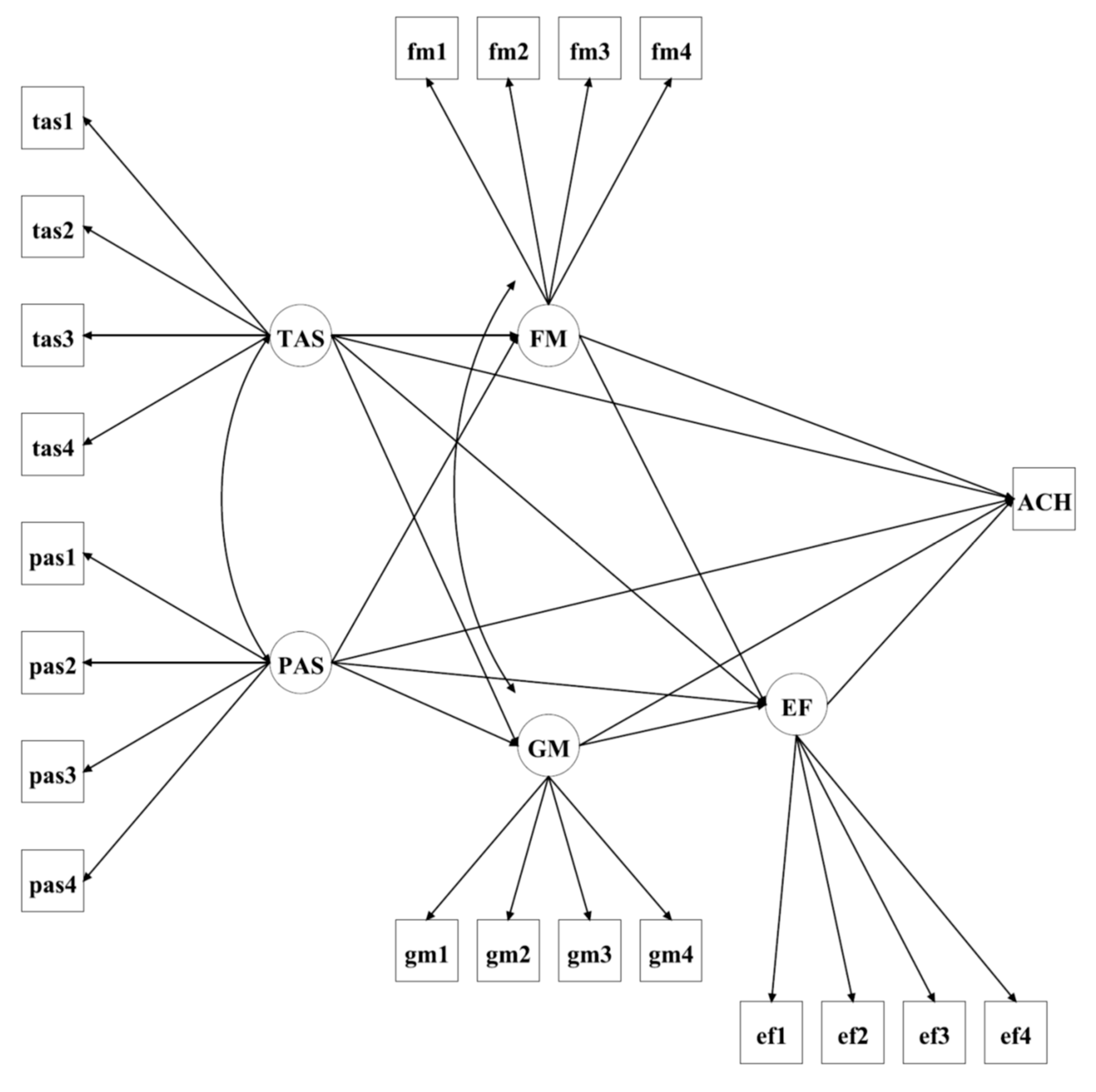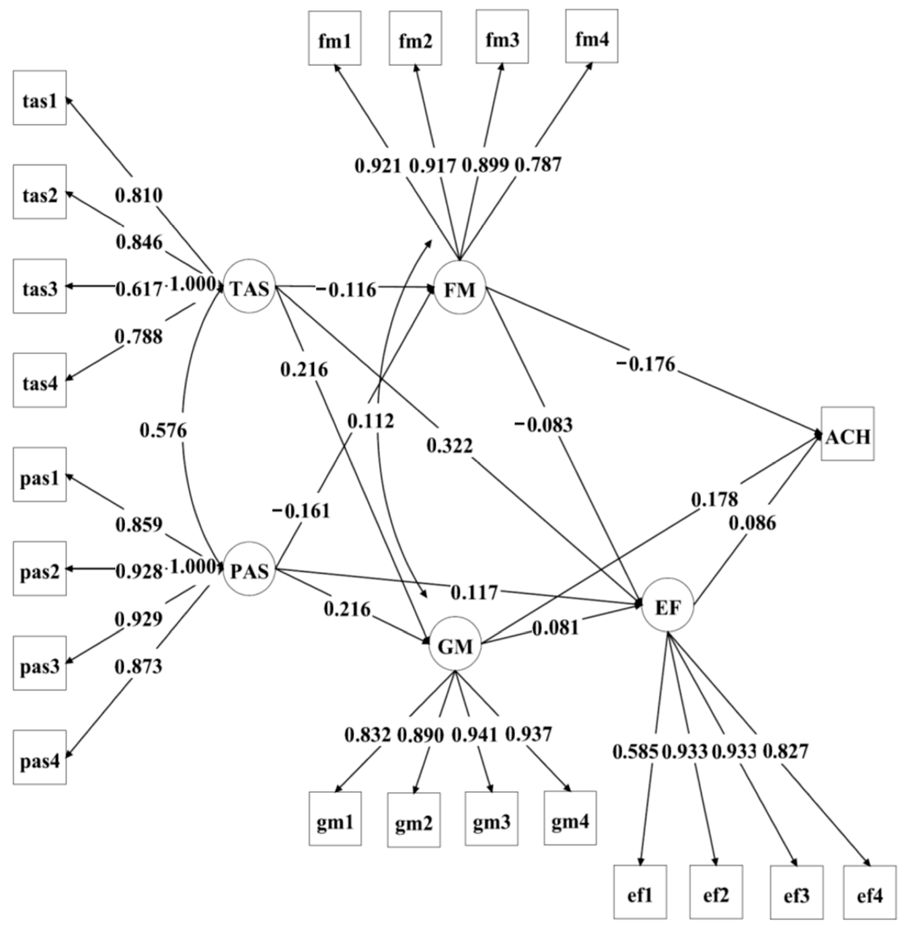 | Direct: PAS → ACH | 0.069 | 0.040 | 0.046 | −0.011 | 0.145 | 0.11 | |