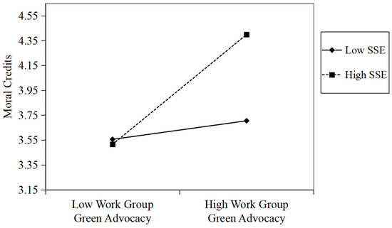Figure 4. The moderating effect of SSE on the relationship between work group green advocacy and moral credits in study 2. Note. SSE = supervisory support for the environment.