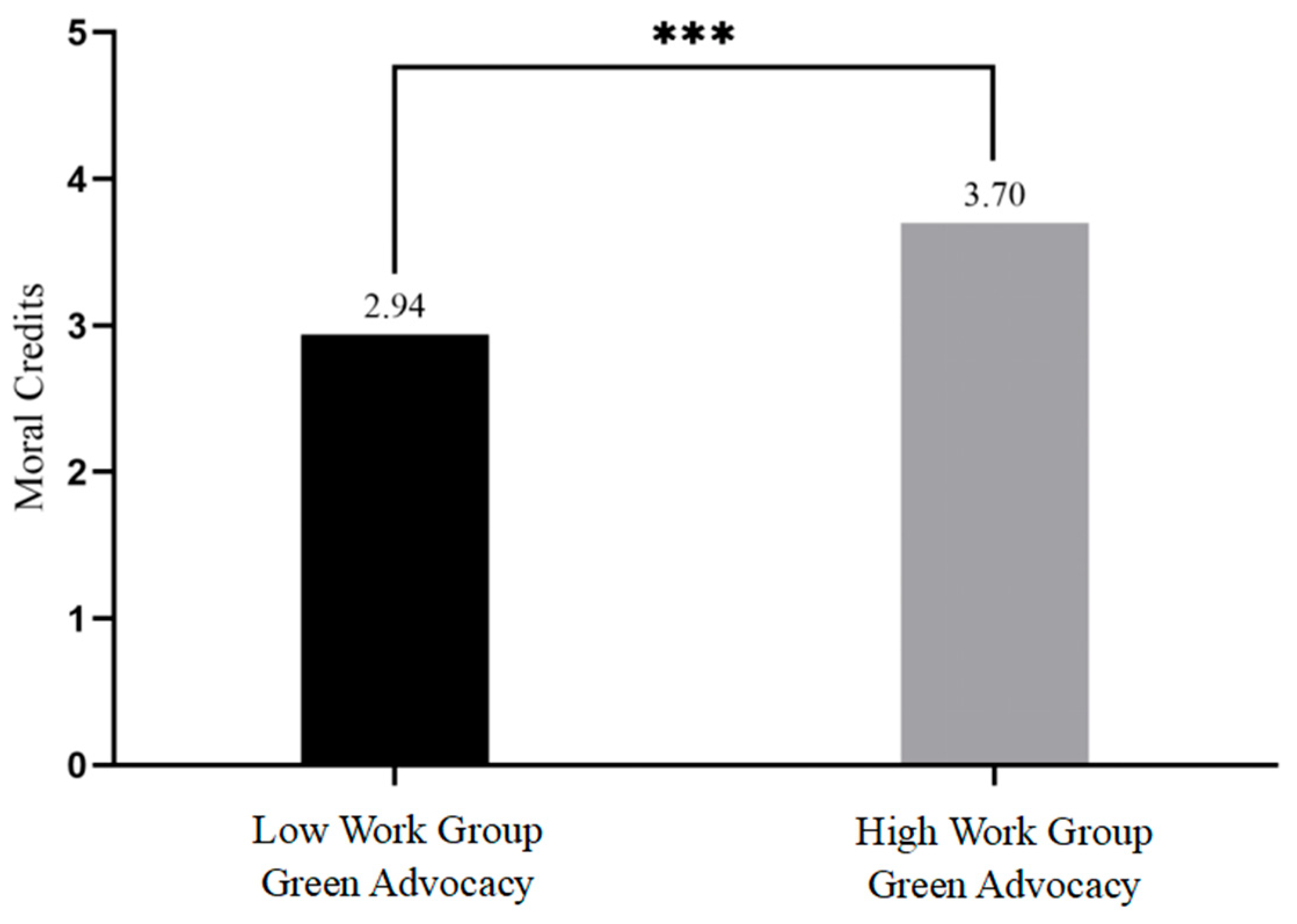 Figure 2. The effect of work group green advocacy on moral credits in study 1. *** p < 0.001.