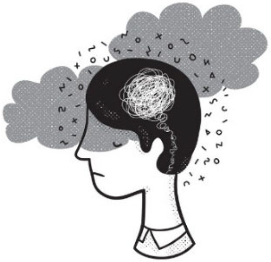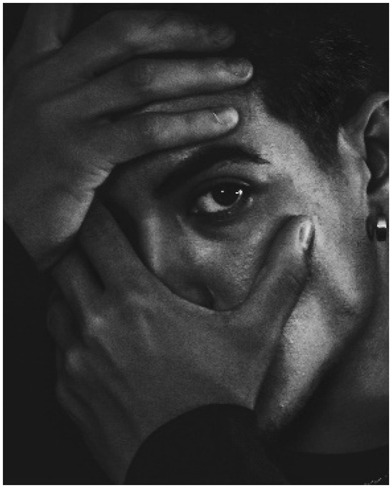 Mental health was central to participants’ dialogues: anxiety, self-harm, suicide attempts, borderline personality disorder (BPD), eating disorders, and insomnia. Anxiety–insomnia links were exacerbated by nighttime electronic device use, as was noted by two of seven participants. In his photovoice, P8 expressed stress and overwhelm from intrusive thoughts and “overthinking” (Figure 6).