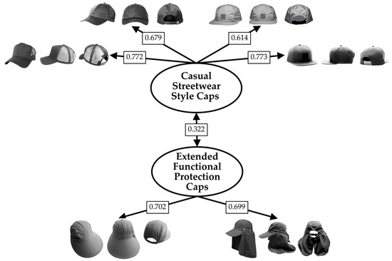 Factor 1 was characterized by high loadings on urban hats (baseball cap, fisherman hat, news boy hat) and was labeled “Flat/Urban style Hats”.