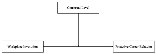 Conceptually, workplace involution perception represents a hindrance job demand, proactive career behavior serves as the focal behavioral outcome, and construal level operates as a personal resource that shapes employees’ motivational, affective, and coping responses to workplace involution. Under high levels of involution, employees with a high construal level are more likely to adopt a more abstract and future-oriented perspective, which buffers the negative impact of workplace involution on proactive career behavior. In contrast, employees with a low construal level tend to focus on immediate constraints and affective reactions, thereby intensifying the detrimental effect of workplace involution on proactive career behavior. Accordingly, construal level is expected to moderate the negative relationship between workplace involution perception and proactive career behavior. As shown in Figure 1, the proposed model illustrates the relationship between workplace involvement and proactive career behavior.
