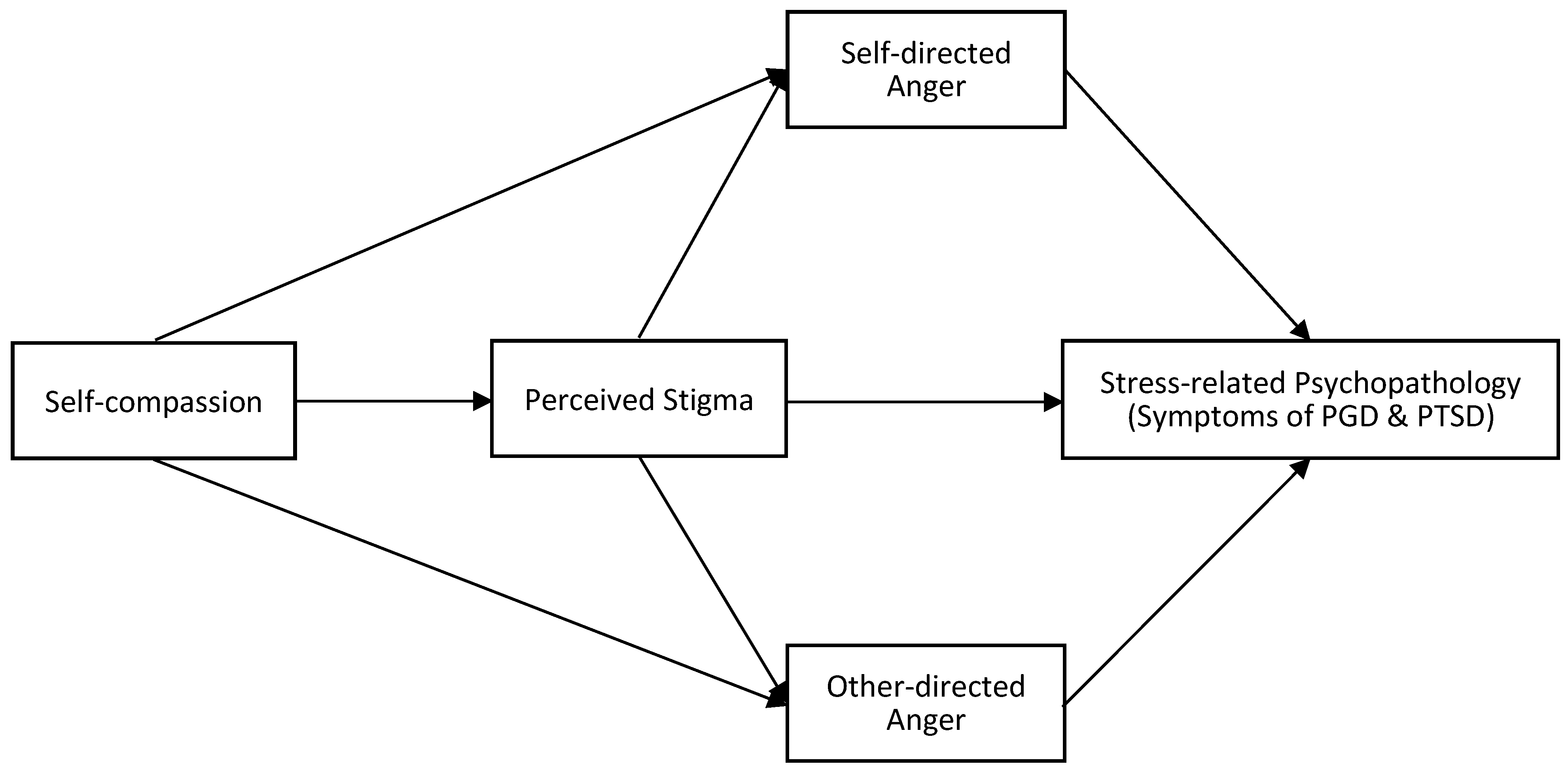 | Self-compassion → Perceived stigma → Self-directed anger → PTSD symptoms | −0.0433 | 0.0233 | −0.0899 | 0.0027 |