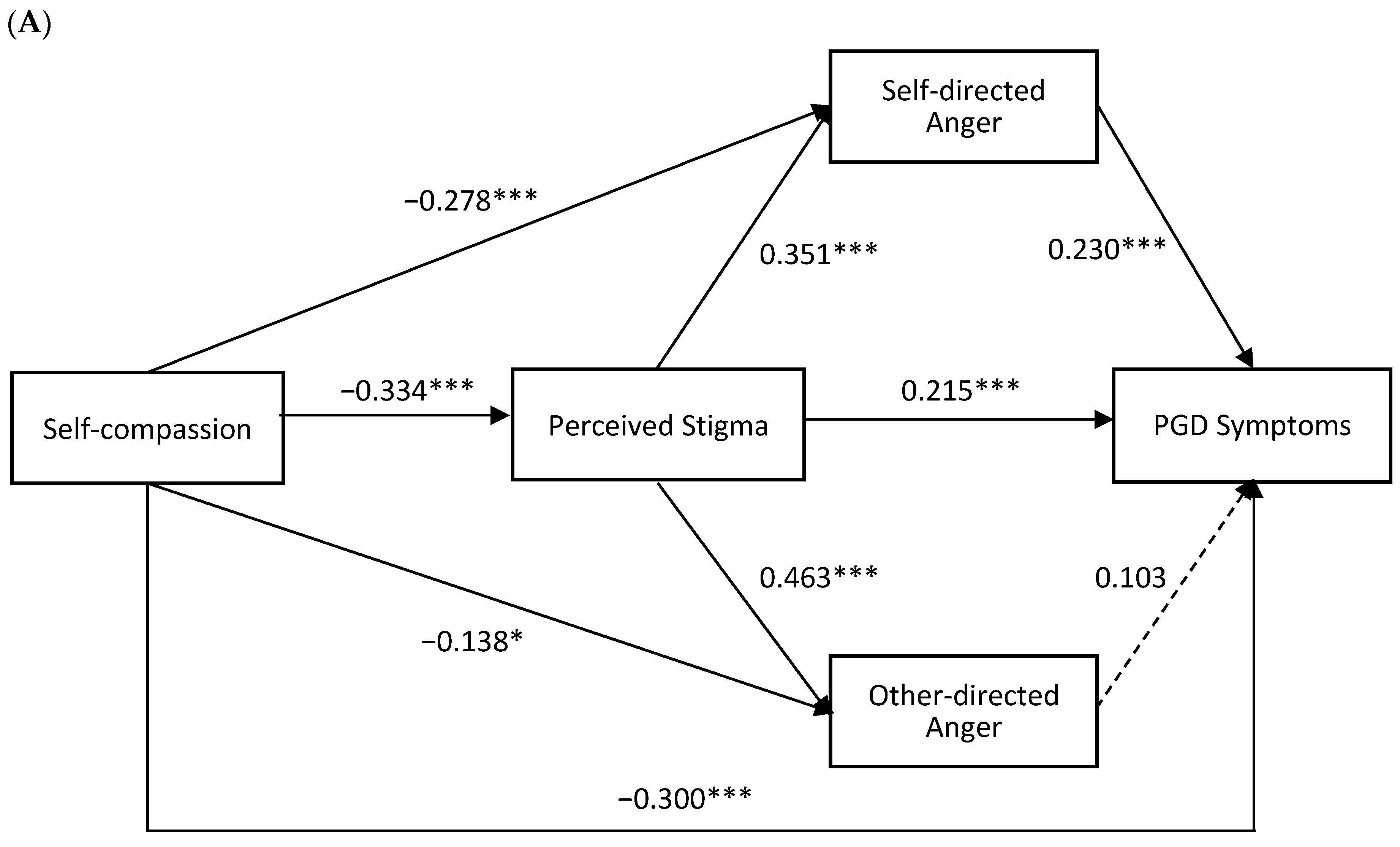 | 1. Self-compassion → PGD symptoms | ||||