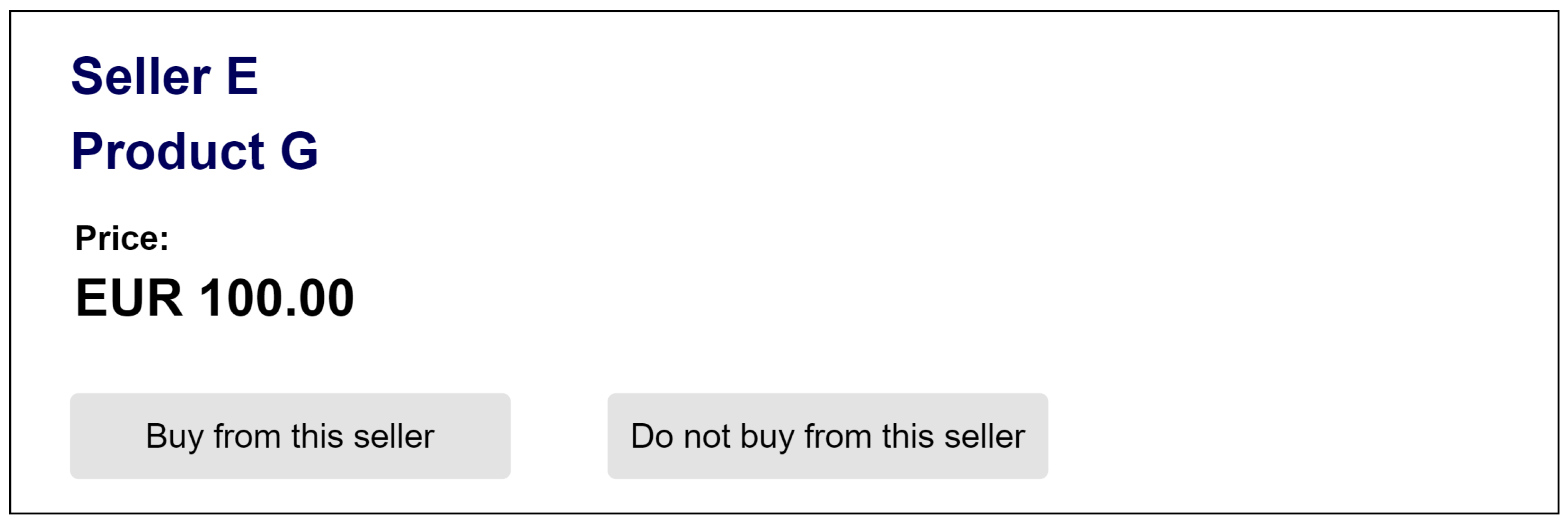 - The product is offered by several sellers in each shopping situation. You can visit these sellers and then decide where to buy the product. Just like the products, the sellers are not mentioned by name, but are referred to as “Seller A” or “Seller D,” for example. The sellers and the product do not differ within a shopping situation! All sellers therefore offer the same product. However, the sellers may charge different prices.