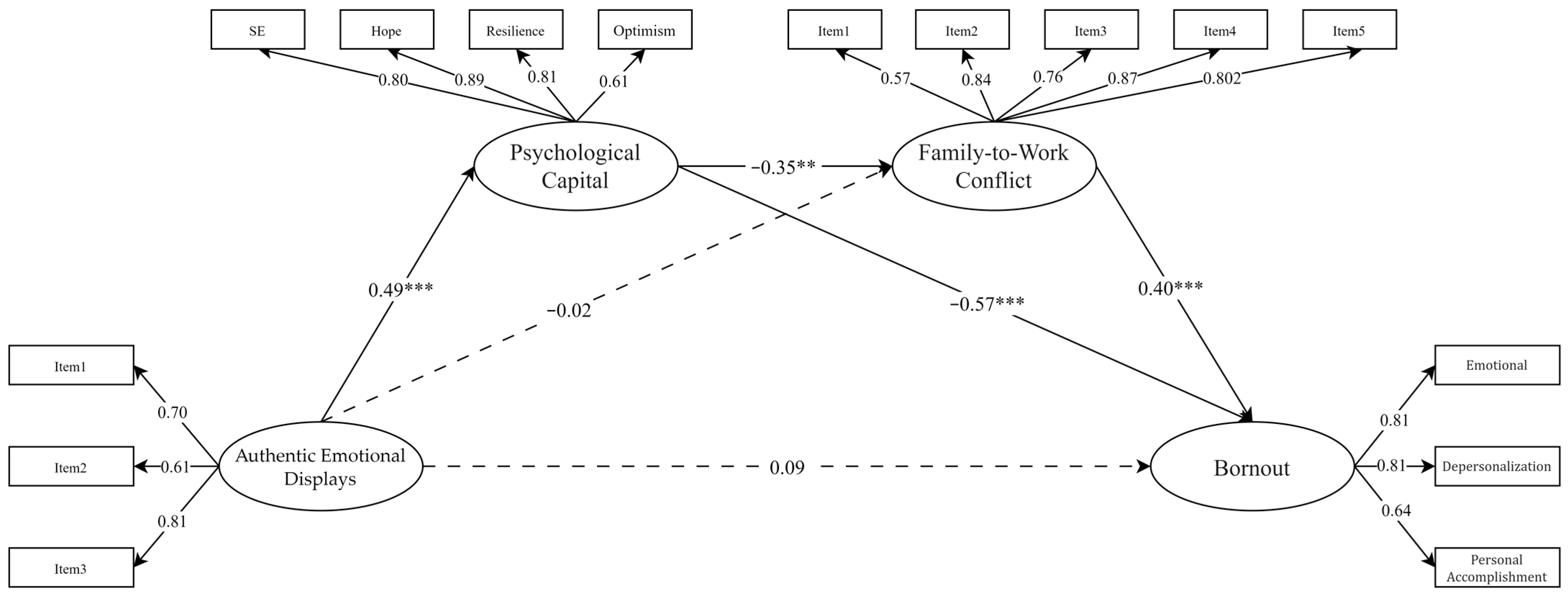 1.3. The Mediating Role of Family–Work Conflict Between Authentic Expressional Displays and Job Burnout