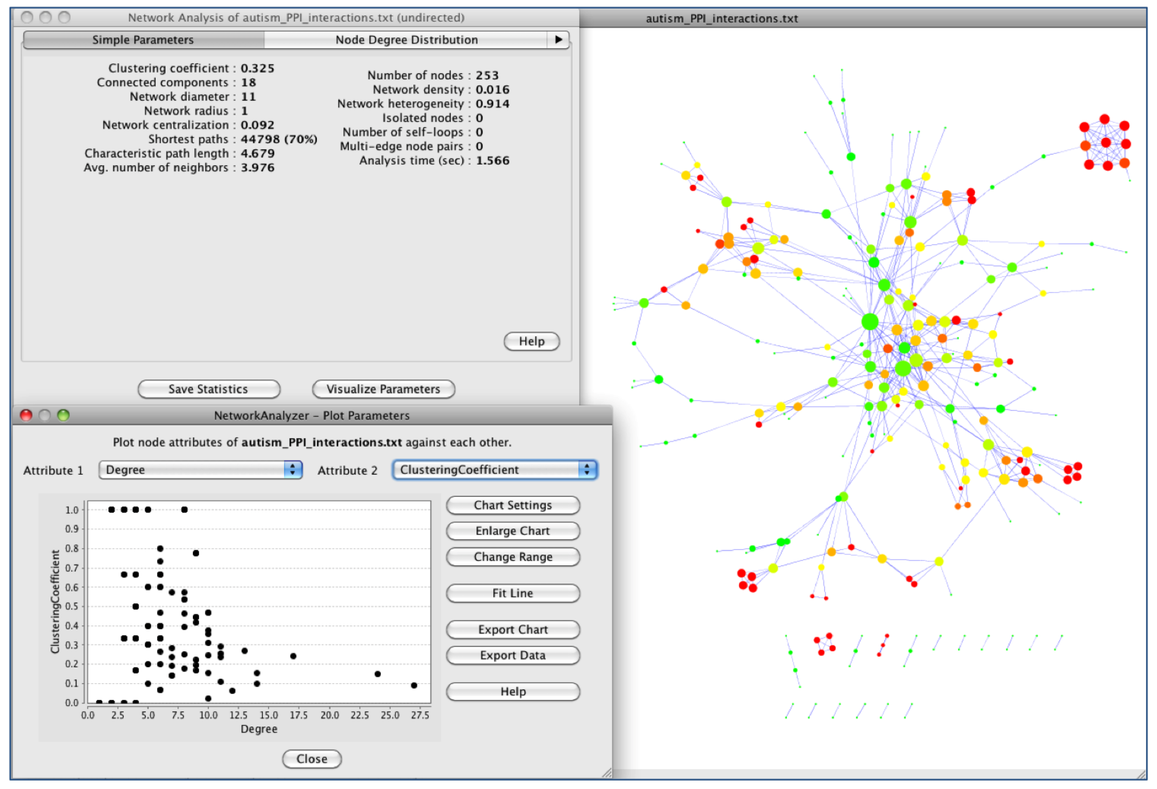 Topological analysis of autism protein-protein interaction (PPI) network using Cytoscape [