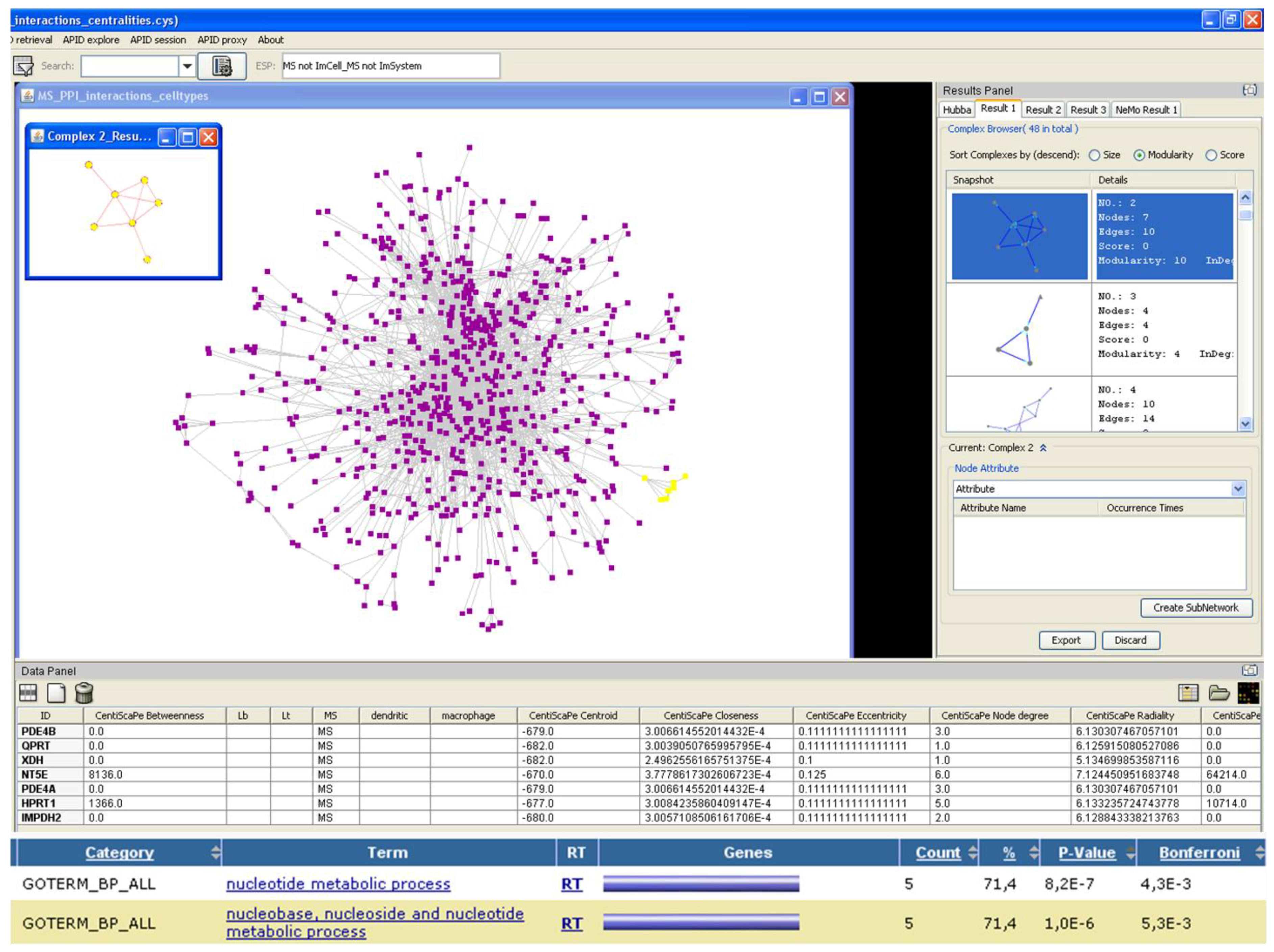 Search for modules in multiple sclerosis PPI network using Cytoscape [