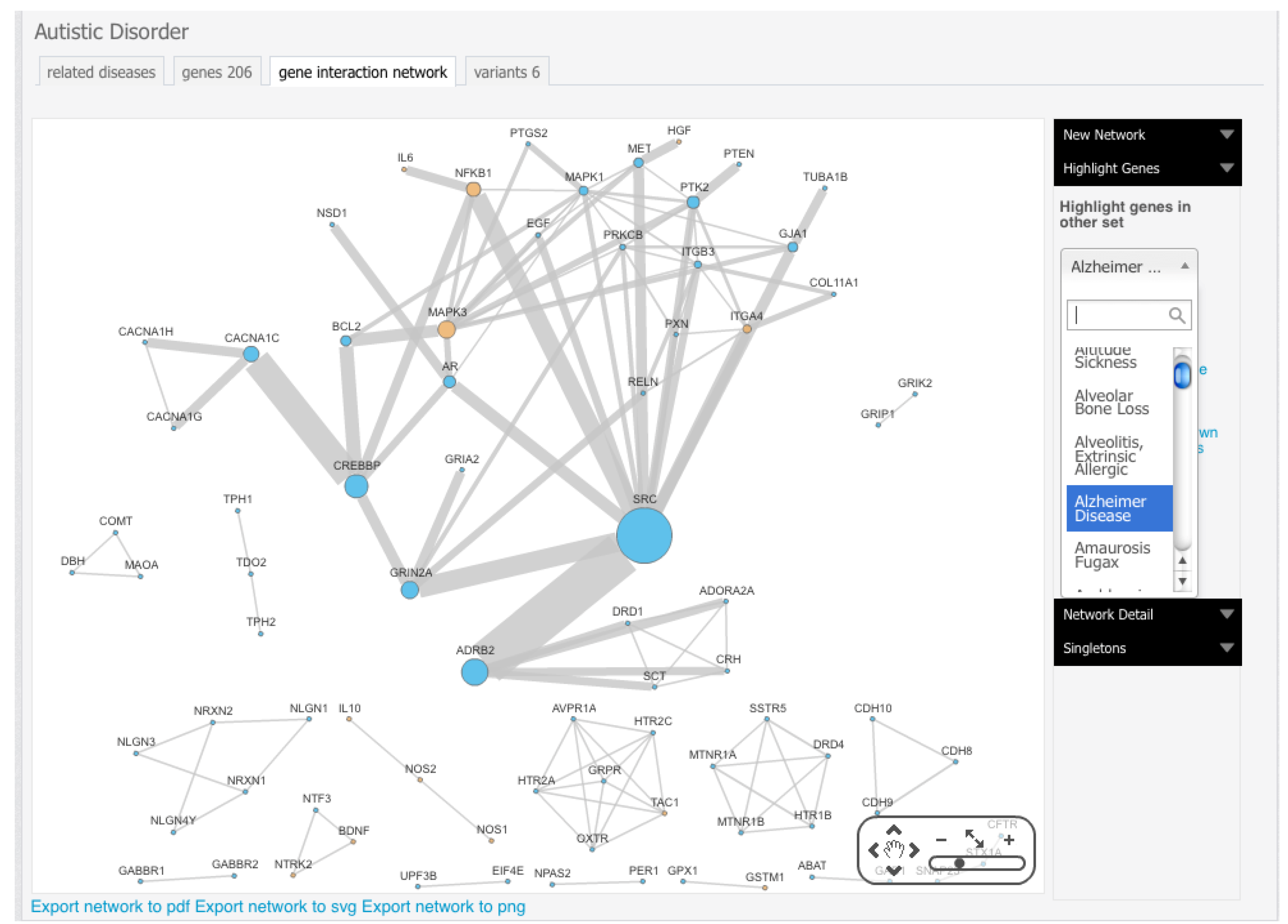 Cross-disease gene interaction comparison of Alzheimer’s disease with the autism network as provided by Autworks [