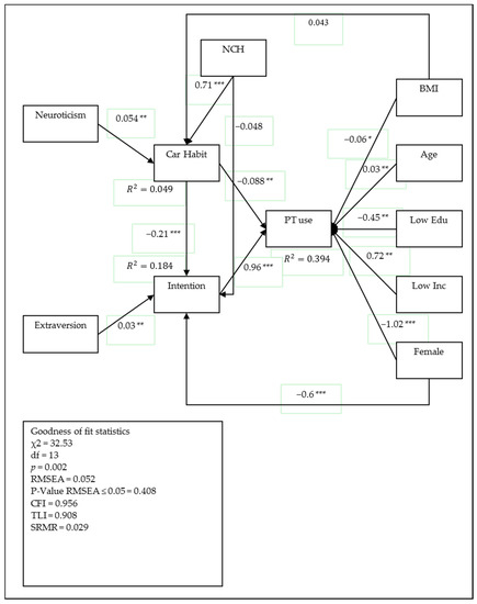 - Bamberg, S.; Ajzen, I.; Schmidt, P. Choice of Travel Mode in the Theory of Planned Behavior: The Roles of Past Behavior, Habit, and Reasoned Action. Basic Appl. Soc. Psych. 2003, 25, 175–187. [Google Scholar] [CrossRef]