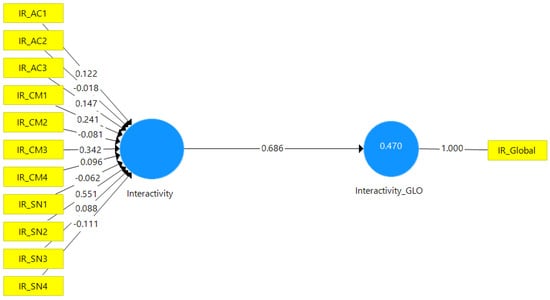Likewise, the researchers checked the outer Variance Inflation Factor (VIF) values using PLS algorithm and all the VIF values were below the recommended 3.3 []. Lastly, to assess the significance and relevance of the formative indicators, the researcher run basic bootstrapping using 5000 subsamples. The results in Table 4 indicates that the weights of IRAC (p-value = 0.01), IRCM (p-value = 0.01), and IRSN (p-value = 0.013) were significant. Thus, based on the results in Table 3, the formative construct measurement model has achieved validity. Having ascertained the validity and reliability of the reflective and formative construct measurement models, the researchers then tested the structural model.