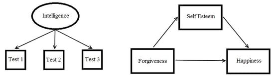 Example path diagrams showing a latent (ellipse) and observable (squares) variables.