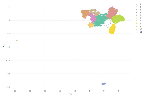 - McInnes, L.; Healy, J.; Melville, J. UMAP: Uniform Manifold Approximation and Projection for Dimension Reduction. arXiv 2018, arXiv:1802.03426. [Google Scholar]