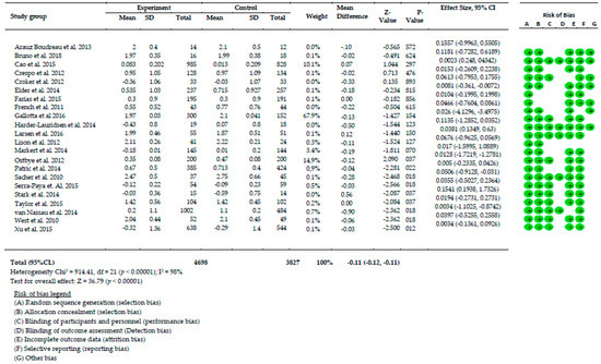 Meta-analysis was conducted using Comprehensive Meta-analysis (CMA), Version 3.0 to analyze by pooling data from each study. The effectiveness of the home-based intervention program on BMI change between the experimental and control groups was explained using mean different and standard deviation. All data should be considered as continuous and thereby to determine outcomes measured, a mean difference with 95% confidence interval was also presented in the analysis process. Heterogeneity of variance was explained using chi-squared and I2 index tests. The random-effects model was performed when the chi-squared for the heterogeneity test was insignificant. Statistical analysis with standard p < 0.05 was carried out by the review manager and a forest plot was carried out to describe the potential publication bias.