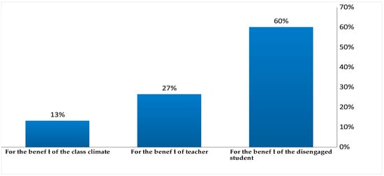 According to the finding presented above, whether a disaffected student is engaged, not only does he/she benefit from his increased engagement level, and class cohesion, but also the teacher himself. Seemingly, these findings indicate that the participants are expressing their concerns about engaging each disaffected student. They identify that student disaffection may affect their personality and academic development. The learning process invites students to unfold various aspects of their character and develop their skills and talents. However, when a student refuses to participate, not only does he deprive himself of learning opportunities, but also does not reveal those traits of his personality and the way of thinking that renders him unique.