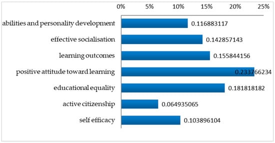 - Active citizenship. A few interviewees (6%) argue that disengaged students need increased opportunities to develop critical thinking and consequently take initiatives and actions, since they are described as being passive, indifferent and reluctant to participate not only in organised classroom activities but also in jointly shared actions (References in the interviews: 9, 39, 55, 57, 72/[Ν = 5/77])I try to engage this specific student in learning so as to teach him to think independently, to decide, to take initiatives and as a consequence, make him an active member of the class initially and society later (Teacher 72: special education teacher, <5 yrs experience).