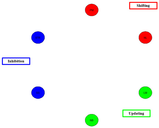 One alternative to increasing our understanding is utilizing network analysis of EF. Network models can surpass the limitations of latent variable models (e.g., the subjectivity of the latent factors, principle of local independence) by detecting the underlying structure of cognitive abilities in an exploratory manner [25]. Kan et al. [25] noted that network models do not suffer from any of the limitations held by latent variable models for several reasons.