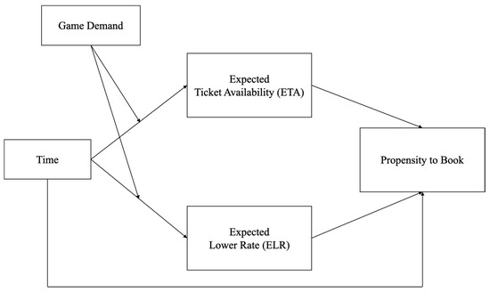 To address the above research questions, the theoretical framework of Dwyer, Drayer, and Shapiro’s generic advanced decision-making model (view Figure 2) was adapted in this study [15]. This model consists of two constructs reflecting risk perceptions that dictate consumers’ advance-purchase decisions in relation to sport tickets: expected ticket availability (ETA) and expected lower rate (ELR). Risk perceptions refer to people’s subjective judgments about the characteristics and severity of a risk [16]. Using a 19-day advance-purchase timeframe, Dwyer et al. found that ETA (an indirect measure of sellout risk) and ELR both decreased for a generic sport ticket product category when nearing the day of the event [15]. Consumers’ lower ETA and ELR risk perceptions should ultimately increase the probability of purchasing event tickets.