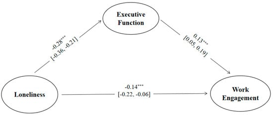 The mediating role of seafarers’ executive function between loneliness and work engagement. *** p < 0.001.