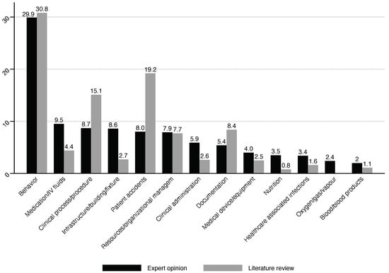 When it comes to the ITC, it was possible to compare our results with a retrospective study conducted in two general hospitals [39], which adopted the ICPS for data classification. Notably, experts suggested higher rates for seven ITCs than the one reported from general care (i.e., Medication/IV Fluids, Infrastructure/Building/Fixtures, Clinical Administration, Medical Device/Equipment, Nutrition, Healthcare-Associated Infections, and Blood/Blood Products).