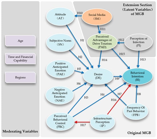 Revising existing social psychology theories can predict the behaviors of individuals in specific situations []. Taylor (2007) demonstrated the inclusion of specific additional variables to extend the MGB model to explain differences in intentions and behavior in specific contexts []. Bui and Kiatkawsin (2020) integrated social networking media into the goal-directed behavior model in their study to investigate the tourism intentions of Vietnamese adventure tourists []. Lee et al. (2012) added non-pharmaceutical interventions and H1N1 perception to better explore the mechanism of the H1N1 pandemic’s impact on the behavioral intentions of outbound tourists []. Meng and Choi (2016) integrated the perception of authenticity into their research and investigated its influence on the intentions of slow tourists []. Chen, Wang (2022) incorporated the variable of risk perception into their research to explore the Influence Mechanism of Intention to Proximity Travel under the COVID-19 pandemic [].