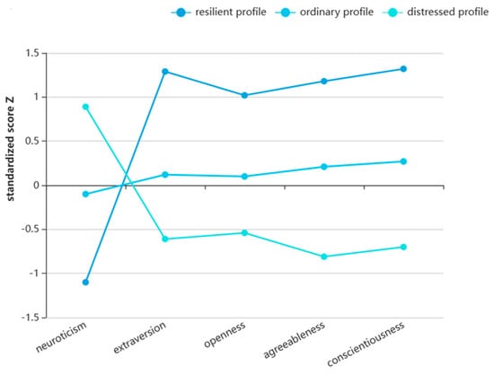Previous studies in anesthesiologists [69] and nurses [46] identified another personality type that was the opposite of the distressed personality profile, with below-average scores on neuroticism and above-average scores on the other four dimensions; this personality type was termed the resilient personality. Researchers argued that individuals with a resilient personality could cope with stress, conflict, and uncertainty in the work environment [69,70]. Unlike these previous studies, this study identified two other personality profiles in addition to the distressed profile. Nurses with one of the personality profiles scored within (mean − 1/2 standard deviation, mean + 1/2 standard deviation) of the five dimensions, and we called this profile the ordinary profile. The other personality profile was characterized by low neuroticism, high conscientiousness, high extraversion, high agreeableness, and high openness, and its average score on neuroticism was below (mean − standard deviation), while its average scores on the other dimensions were above (mean + standard deviation). Previous studies have shown that openness, extraversion, agreeableness, and conscientiousness are positively correlated with an individual’s level of resilience, whereas neuroticism is negatively correlated with the level of resilience [26,70,71,72,73], so we have named this personality profile the resilient profile. “Resilience” is a stable and unique form of response formed by individuals in the process of coping with stress, which can help individuals buffer stress and maintain physical and mental health [26,71].