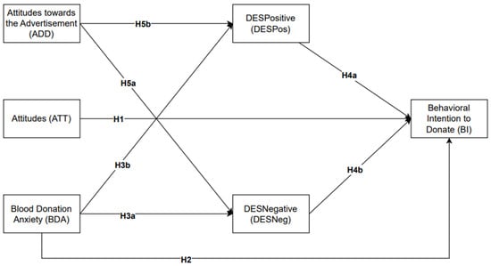 Thus, we further explored the potential impact of emotional arousal as a mediating factor. The mediation analysis revealed that emotional arousal, specifically positive (DESPos) and negative (DESNeg), is identified as a mediating factor in the effect of attitudes toward advertisements (ADD) on behavioral donation intention (BI), validating hypotheses H6a and H6b. This partial mediation through affective reactions indicates that although emotions evoked by advertisements have a role in determining donation intentions, they are not the only factor shaping the overall influence of individuals’ attitudes toward the due to advertisements. Additionally, the indirect effect of blood donation stress (BDA) on BI through emotional reactions, as evidenced by hypotheses H7a and H7b, demonstrates the multidimensional contribution of stress, both directly and indirectly, through the activation of emotional reactions that affect the decision-making process of donating blood. The observed partial mediation points to the need for the implementation of holistic promotional strategies, which will consider both emotional and rational factors that shape individuals’ intentions towards voluntary blood donation. This approach enhances the understanding of the complex nature of the decision-making process to donate blood and highlights the importance of providing multidimensional information and awareness campaigns in the context of blood donation. Furthermore, incorporating the findings into action planning can optimize the effectiveness of blood donation promotion initiatives, increasing the attraction of new donors and enhancing repeat donation from existing ones.