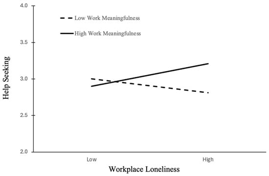The negative relationship between workplace loneliness and help-seeking behavior is moderated by work meaningfulness, such that this relationship is attenuated when work meaningfulness is high but becomes stronger when work meaningfulness is low.