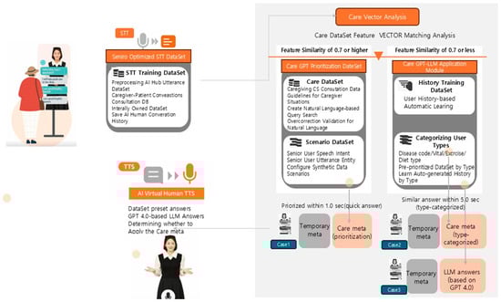 In this study, we examined the AI Virtual Human (AVH) system, which provides distinct functionalities tailored to older adult users and professional caregivers.