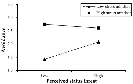 The stress mindset negatively moderates the relationship between incumbent employees’ perceived status threat and avoidance coping. The stronger the stress mindset, the weaker the relationship.