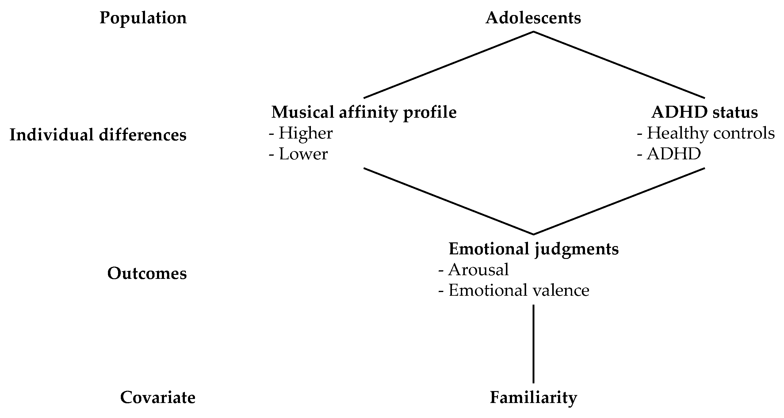 Robaczewski, A.; Harkins, E.; Pelland-Goulet, P.; Gosselin, N. How Familiarity, Musical Affinity, and ADHD Shape Adolescents’ Perception of Musical Emotions. Behav. Sci. 2025, 15, 1570. https://doi.org/10.3390/bs15111570