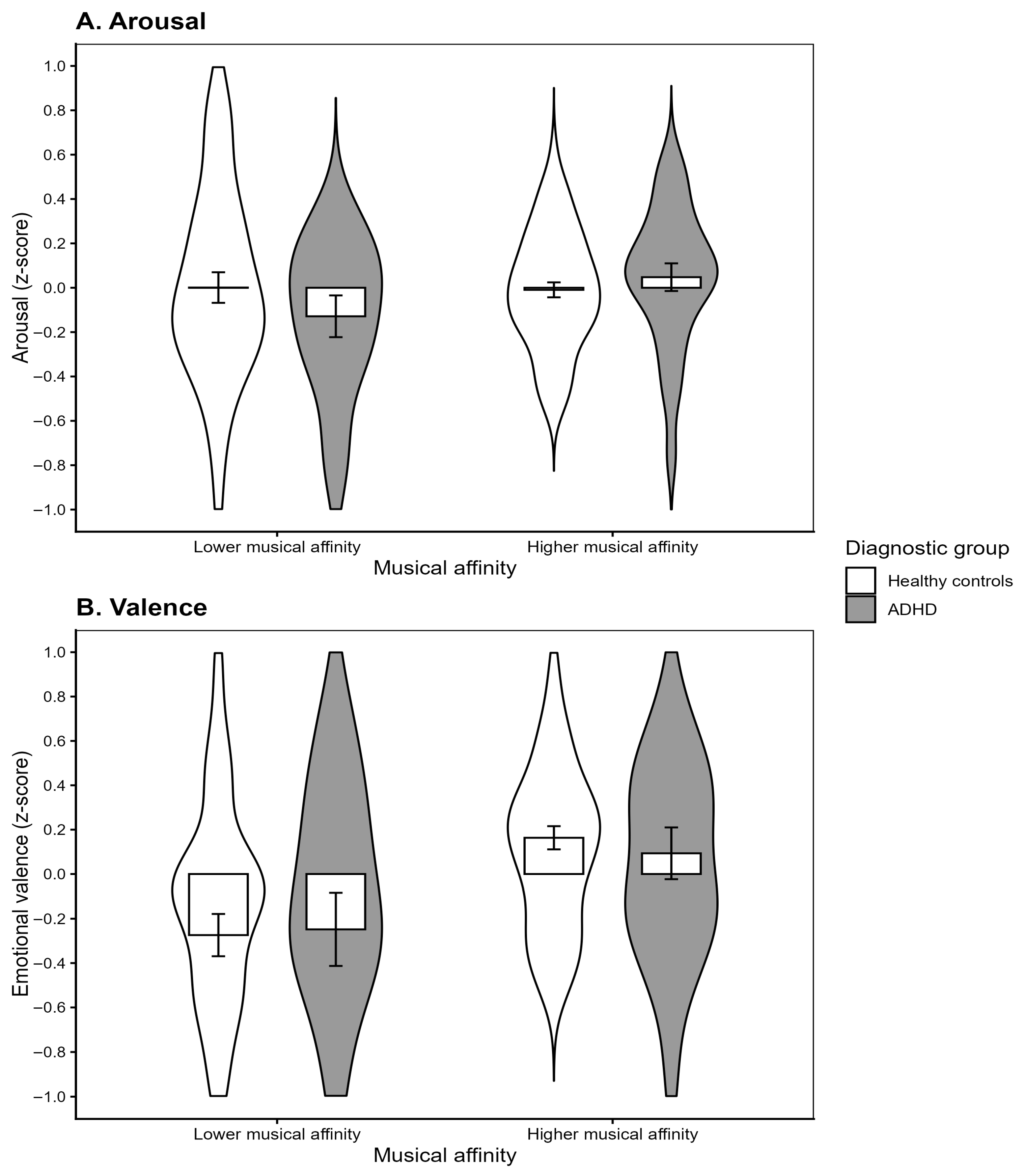 3.1. Contrasting ADHD and Healthy Controls Across Musical Affinity Profiles