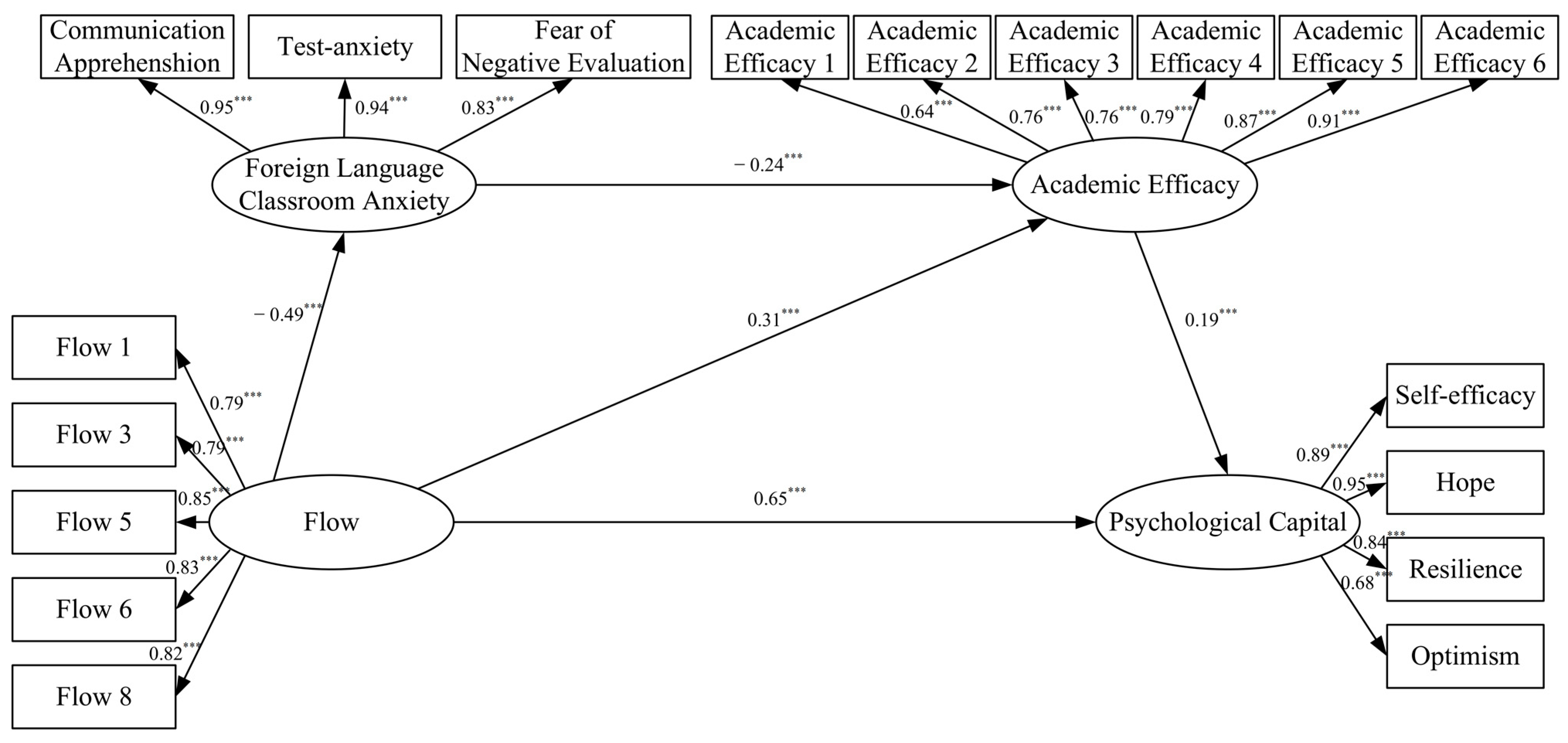 | Flow→FLCA→ Academic Efficacy→PsyCap | 0.023 | 0.005 | 0.014 | 0.034 | 0.000 |