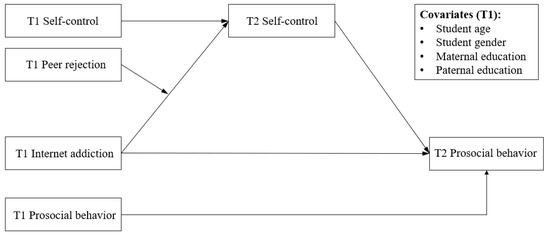 The mechanism underlying the relationship between internet addiction and prosocial behavior remains complex. A key factor that may mediate this relationship is self-control, which has been shown to be significantly associated with both internet addiction and prosocial behavior (C. Li et al., 2014). Adolescents with lower levels of self-control are more likely to engage in excessive internet use, which in turn may diminish their ability to regulate their behaviors and engage in prosocial actions offline (Rankin, 2019). Furthermore, the peer environment plays a crucial role in shaping adolescents’ behavior (Chávez et al., 2022; Loparo et al., 2023; Xiao & Qian, 2023). Negative peer relationships, such as peer rejection, have been linked to both self-control difficulties and an increase in externalizing behaviors, including aggression and social withdrawal (Meldrum & Hay, 2012; Loparo et al., 2023). However, the moderating role of peer rejection in the relationship between internet addiction and prosocial behavior remains under-explored. To address these gaps, two-time longitudinal data were used to examine the association between internet addiction and adolescent prosocial behavior, and to examine self-control as a mediator and peer rejection as a moderator.
