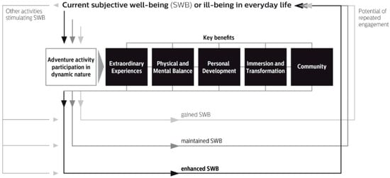 - Houge Mackenzie, S., Hodge, K., & Filep, S. (2021). How does adventure sport tourism enhance wellbeing? A conceptual model. Tourism Recreation Research, 48, 3–16. [Google Scholar] [CrossRef]
