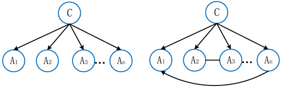 where represents the class, denotes the set of feature variables, and refers to the parent node of feature .