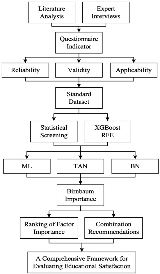 To overcome these challenges, a new framework is introduced in this study to evaluate postgraduate education satisfaction, integrating behavioral insights. The framework uses a two-step feature optimization process, including statistical pre-screening and XGBoost-based feature elimination, to select the most important factors. A Tree Augmented Naive Bayes (TAN) model is used to build a causal network, revealing how these factors interact. The model’s reliability is confirmed through confusion matrices and performance metrics. Additionally, Birnbaum importance metrics are used to quantify the marginal contributions of individual features to satisfaction, providing deep behavioral insights into the critical roles of academic enhancement, quality development, and the mentor’s role. This approach not only enhances the interpretability and scientific rigor of satisfaction evaluations but also provides actionable, data-driven recommendations for improving key behavioral indicators in postgraduate education.