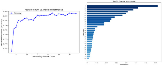 XGBoost was chosen as the base model for RFE due to its high performance and efficiency through parallel computation and regularization optimization. It effectively handles high-dimensional nonlinear data and provides clear feature importance evaluation, forming a solid foundation for recursive feature selection. In this stage, feature importance is initially assessed using XGBoost’s built-in method, ranking features based on their gain values (J. Chen et al., 2020).