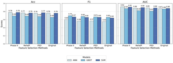 In addition, to validate the effectiveness, the ReliefF and PSO methods were included in a comparative experiment. This multi-faceted evaluation of different strategies ensures that the final selected feature subset demonstrates superior practicality and stability.