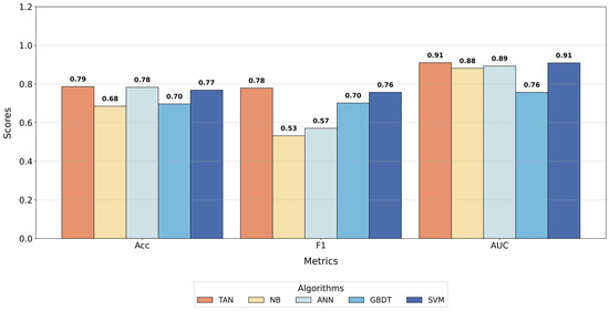 Naive Bayes (NB) applies Bayes’ theorem with the assumption of feature independence, simplifying computational complexity. The Tree-Augmented Naive Bayes (TAN) model enhances this by introducing dependencies between features through a tree structure. TAN maximizes the likelihood function to optimize the feature dependencies (Xiao et al., 2022). The formula is expressed as follows: