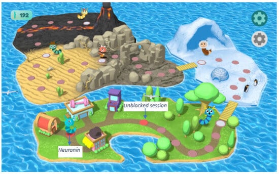 Both groups received training sessions in groups of 10, conducted in the computer room during school hours and supervised by the researcher. The experimental group underwent training sessions lasting 12 weeks, following the STap2Go protocol (). Students completed activities three times weekly in 30 min sessions on alternate days. When the participants enter the program (available at https://www.stap2go.es/, accessed on 14 November 2022), they access the “Neuronín World”. In this world, an avatar (Neuronín, a neuron-like character) will interact with different characters as participants progress through the circles on the board. Throughout the Neuronín World, a map-like structure with various elements designed along the session path (e.g., igloo, volcano…), participants will encounter characters with attentional and executive function difficulties. Neuronín will assist them by completing training sessions. By completing the activities, participants can advance along the path and meet new characters. Additionally, Neuronín earns a series of rewards based on the “energy” gained from performing the exercises. In Neuronín’s World, the following areas are available: (1) Neuronín’s House (where Neuronín can be taken care of), (2) the Gym (where Neuronín can perform exercises to train different abilities such as attention and executive functions; exercises appear randomly), (3) the Store (where Neuronín can be dressed), and (4) the Mini-game Lounge (where fun games can be played, which reward the completion of sessions). None of these areas are accessible until the participant completes the training sessions, and in this study, none of these features were used. Participants in the study only used the sessions path. On this world map, there is a path with circles (the protocol applied to participants), with each circle representing a session fixed by the protocol. By clicking on the first circle on the board, the STap2Go protocol begins. Each subsequent circle will unlock as the corresponding sessions are completed. The protocol consists of 100 exercises spread over 12 weeks (3 sessions per week on alternate days), carried out by clicking on each circle along the path in the established order. Each session includes 3 exercises with 2 repetitions of each. The program included go/no-go, stop-signal tasks, N-back tasks, and switching tasks, combined with metacognitive strategies provided before, during, and after the task (following a pre-designed decision tree) and after the tasks. The stimulus presentation (images and/or sounds) time was 1000–1500 ms, with a 500 ms window to respond. The average duration of each task was 2 min.