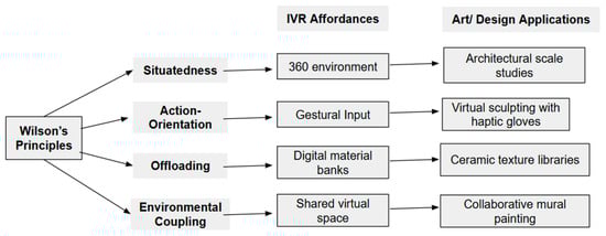 - How do embodied cognition principles (e.g., Wilson’s six principles) manifest in IVR-based art/design pedagogy?