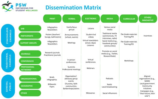 The study team has partnered with SAB members and study participants in the development of dissemination products. Participants, including teachers, clinicians, and school administrators, have collaborated with study team members to present findings at multiple conferences. Participants have also been involved in developing and reviewing consumer products (e.g., informational booklets, curricular materials, training materials), which has been critical to optimizing their utility to end users. Recently, a website was developed and refined through multiple open meetings with community members to ensure that the materials and formatting were optimized for a community audience (see www.partneringforstudentwellness.com). These efforts are ongoing, with the study team collaborating with the SAB and participants to explore new opportunities for community-engaged dissemination.