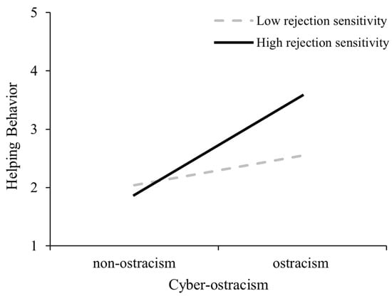 Rejection sensitivity positively moderates the relationship between cyber-ostracism and bystanders’ helping behavior. Specifically, bystanders with high rejection sensitivity will exhibit a more significant increase in helping behavior after witnessing cyber-ostracism compared with those with low rejection sensitivity.