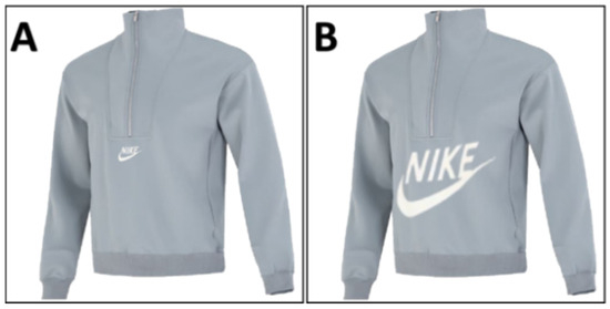 Experimental materials for Experiment 4: (A) Clothing item with a smaller logo; (B) Clothing item with a larger logo.