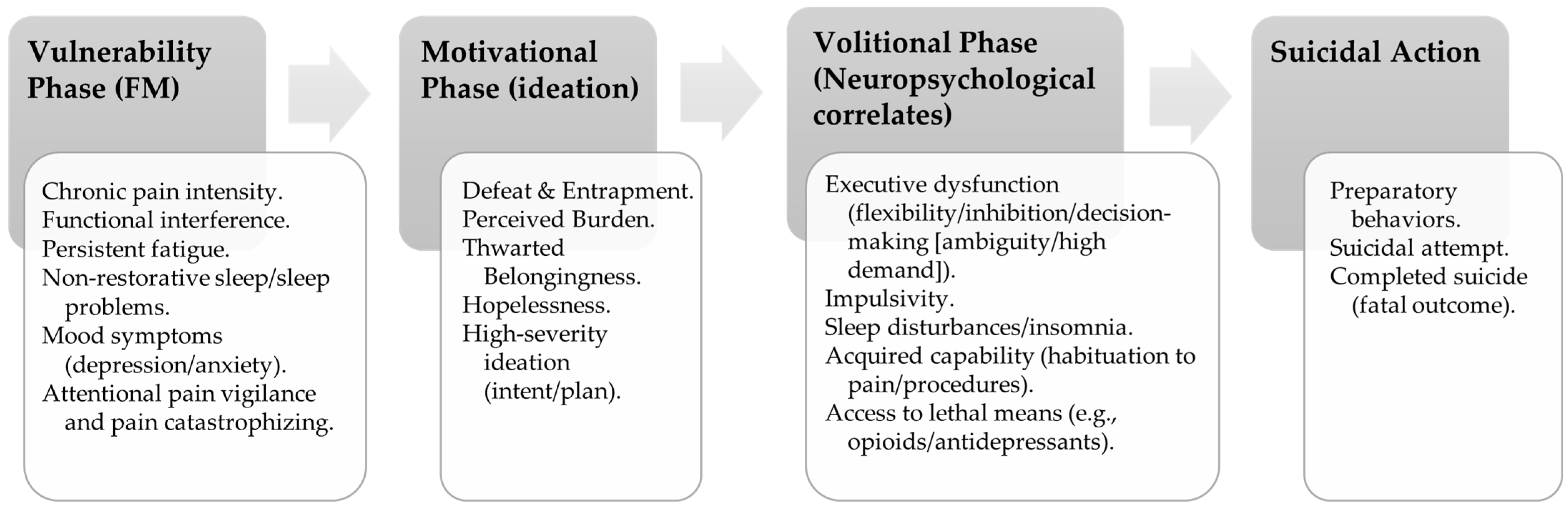 4. Neuropsychological Correlates and Suicidal Behavior in Fibromyalgia: Integration with Ideation-to-Action Models (IPTS/3ST/IMV)